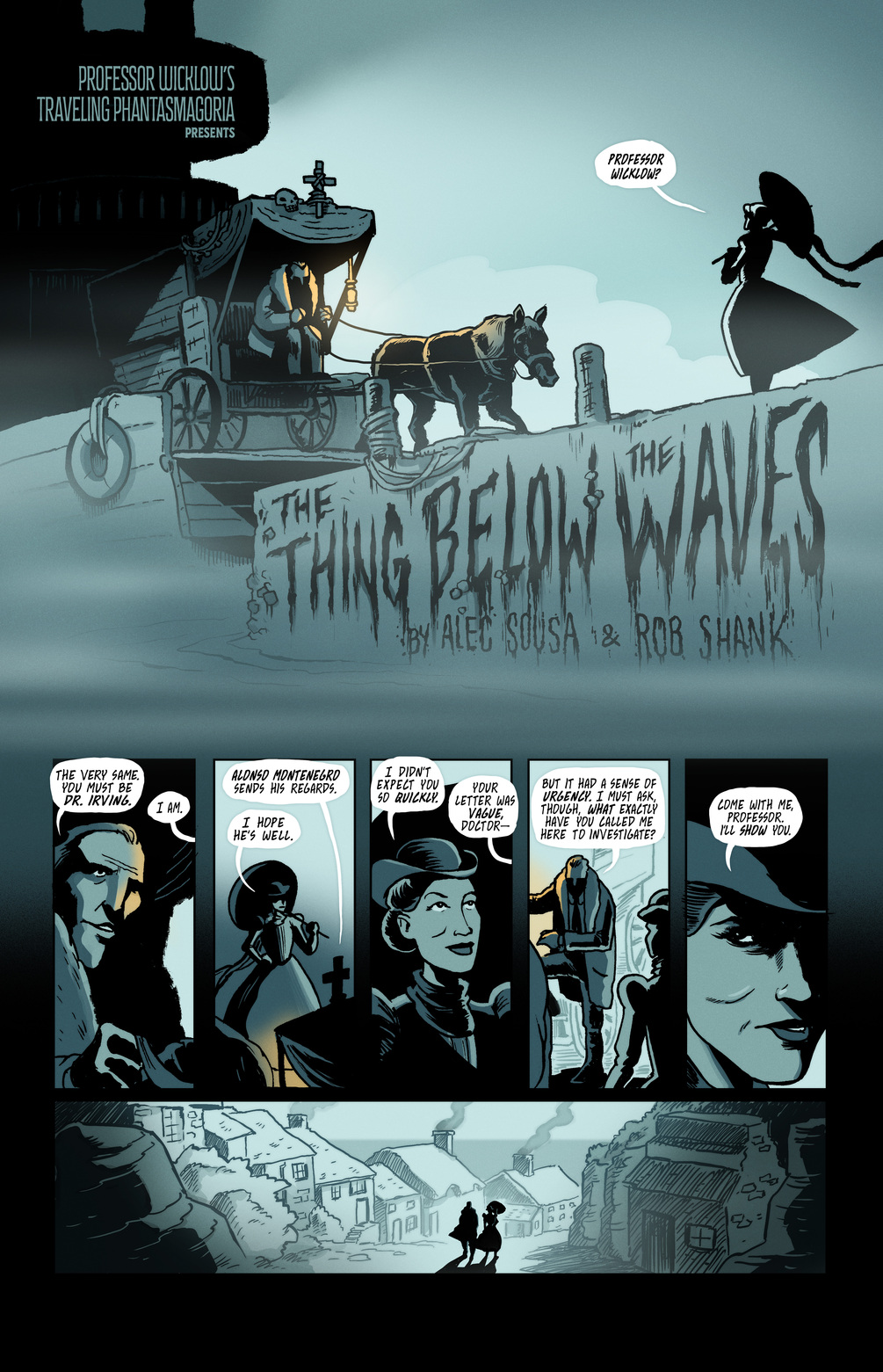 Something deadly lurks beneath the waters surrounding the village of Fishbone, and only Professor Wicklow — globetrotting investigator of supernatural curiosities — can find and destroy it! Join him as he unravels the strange mystery of The Thing Below The Waves!